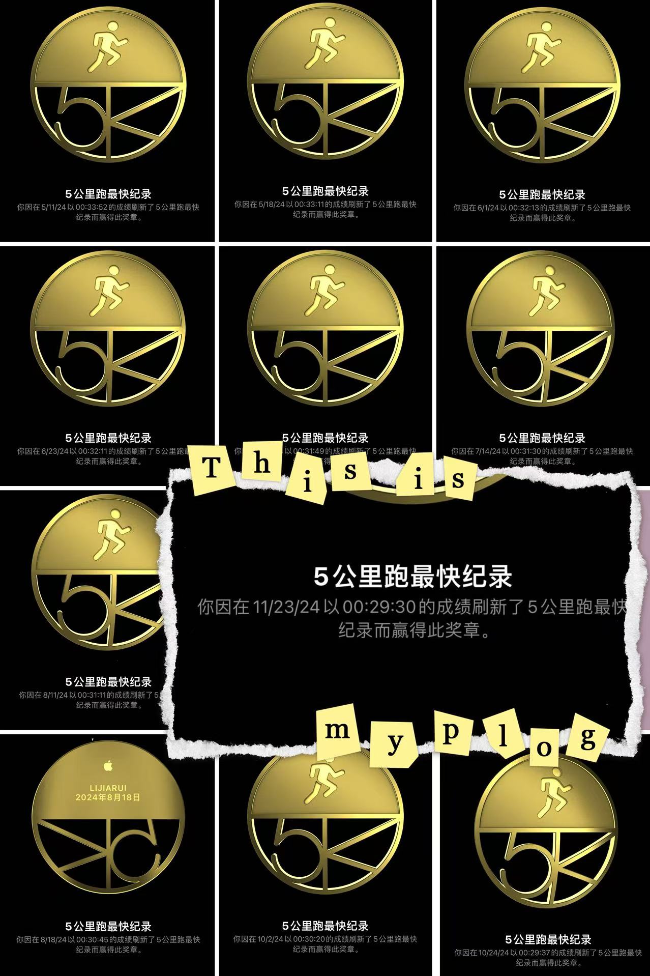 这一年,我拿到了 11 个「五公里最快记录」,从最开始的 33 分 52 秒,到年底跑到了 29 分 30 秒,这个数字弥补了我没有完成 100 天数字的遗憾。