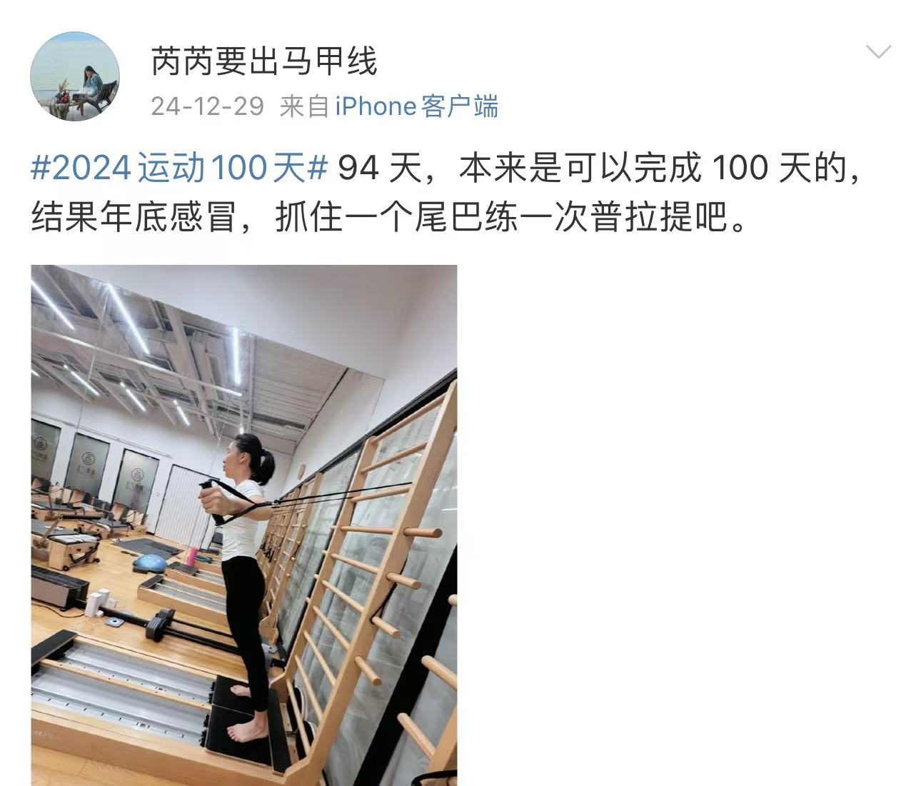 如果说今年的小遗憾,就是明明可以今年完成 100 天的运动计划,在年底却因为流感彻底歇了。这一年,跑步,跳舞,滑雪,普拉提加在一起,凑凑合合只做到了 94 天。